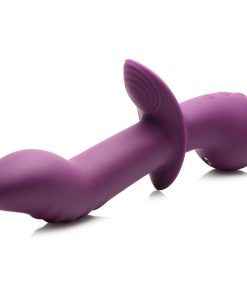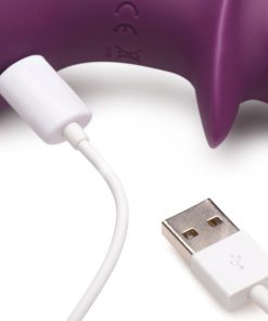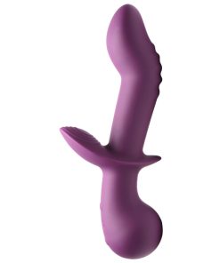 This thick, plush, silky smooth vibe is perfect for targeting P-spots and G-spots! The shaft is slightly bent so that it can be inserted and either milk the prostate or stimulate the G-spot with ease. The back of that delicious curve has rows of textured ridges to give you extra pressure and stimulation. At the bottom of the shaft is a wide, flanged base making it safe for anal or vaginal penetration. As a bonus, there are rows of concentric circles on one of the flanged ends and the delicious ridges rub against their clit or perineum depending on which direction the vibrator is inserted. Choose between 5 speeds and 5 patterns of delicious vibration in this phthalate-free, premium silicone toy. This sexy vibe has a waterproof rating of IPX6 so it can withstand strong jet streams of water for showertime fun! Recharge using the USB cable provided. Wash the toy with warm water and soap and then spray with a toy cleaner before wiping dry and storing in a cool, dark place.