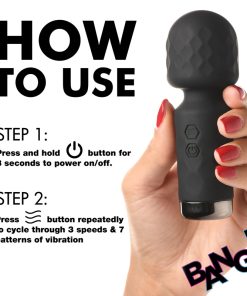 This is for the discreet hedonists. For those always ready for fun. This is for those travelers who bring their toys along. For the overnight stays and nights you get lucky. This mini wand fits perfectly between you and your partner for steamy sessions where just a little more stimulation does the trick. It fits in purses, bags and deep pockets. Made from premium silicone, it's phthalate-free, silky smooth and soft against sensitive skin. The flexible neck bends in just the right angles. Enjoy 3 speeds and 7 patterns of vibrating bliss on any body part that craves a little more attention. It's splashproof, too! It can handle gentle sprays of water or other fluids. After your self-love session, simply wash it with warm water and mild soap, then spray it with a toy cleaner and pat dry.