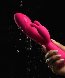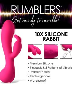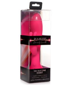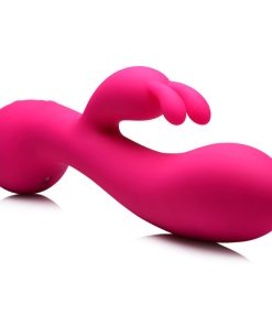 This hot pink, silky smooth rabbit vibe is power packed with 5 speeds and 5 patterns of rumbling vibration! Enjoy deep, fulfilling penetration as you let the plush rabbit ears tingle and tease your clit! Made of premium, phthalate-free silicone, this toy is built for a long shelf-life and body-safe fun. Buttons are located on the handle so you can easily switch settings. When you play solo you can enjoy dual stimulation induced orgasms, or you can invite your partner to use this fantastic toy on you! Don’t limit yourself to the bedroom; this toy has a waterproof rating of IPX6 so it does well in the shower! Wash with warm water and soap, then spray clean with a toy cleaner between uses. Store clean, dry and in a dark place away from direct sunlight. Recharge using the USB cable provided.