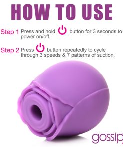 Rub a little lube on yourself and the mouth of the suction hole. Turn the rose clit sucker on and point the hole towards your little pearl, then slowly massage in circles, up and down, and then alternate placing it on your body and removing it so it suctions up and catches your pearl again and again. Play with different settings and find your favorites! Use it for stress relief when you want to give yourself some personal attention. Angle yourself so your pubic bone is facing away from your partner and let them penetrate you as you please yourself as well, doubling the pleasure!