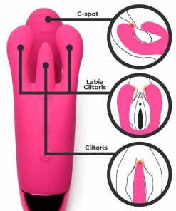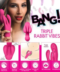 Indulge in pleasure you’ve never known before with this Triple Rabbit Vibrator! The unique design is created specifically for female comfort and pleasure. The G-spot targeting shaft is comfortably curved with a rounded head and textured ridges so it hits your sweet spot with ease. The triple rabbit clit stimulator vibrates against your clitoral glans and your labia so you can get stimulated at every angle! Enjoy 3 speeds and 7 patterns of powerful vibration from three different motors. Take it with you in the shower, pool, jacuzzi or bathtub! This toy has a waterproof rating of IPX7 allowing you to enjoy all kinds of wet fun! Made of premium silicone, it is silky smooth and phthalate-free for body safe, worry free fun! Between uses, recharge the battery with the USB cable provided. Wash after use with warm water and soap, then spray with a toy cleaner and wipe dry.