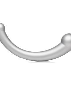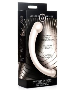 10X Vibra-Crescent Vibrating Silicone Dual-Ended Dildo – Silver