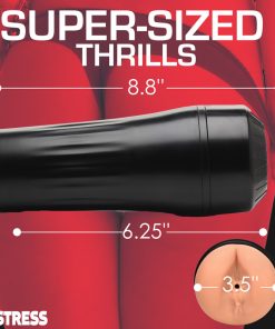 Satisfy your cravings for stroking your rod in a tight, little hole with this vibrating masturbator from the Mistress line! Imagine penetrating this realistic, soft and stretchy, premium TPE hole of your Mistress and enjoying the textured tunnel as it squeezes and massages your rod with each stroke! Use it to train yourself to last longer and practice edging. Enhance your erotic fantasies with a physical prop. Make those long-distance relationships more interesting by bringing a stroker to the call. With 3 speeds and 7 patterns of powerful vibration, you can push yourself to the edge or over it and enjoy the satisfying enhanced pleasure that only a stroker like this can deliver! Completely body-safe, this TPE stroker is phthalate-free and latex-free. Use only with water-based lubricant. Do not submerge under water, but use as much lube as you like! Clean before and after use with mild soap and water. Pat dry then sprinkle with cornstarch powder to extend the life of the product. Store separately in a cool, dust-free location. Use the USB cable to recharge between uses and keep the dust cap on to keep it clean and debris-free.