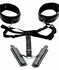 Your submissive lover wants to be even more vulnerable to your desires! Put them in this positioning harness to spread their legs open and keep their wrists trapped behind their back. Four points of adjustability allow you to customize the chest harness to your partners size. The elegant ankle and wrist cuffs are also fully adjustable with the buckles. This comfortable positioning aid can be used during foreplay or sex to pleasure your pet… and yourself!