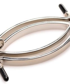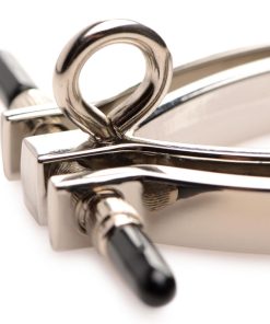 This durable Pussy Tugger is built to last! The vaginal clamp and the chain of the leash are made of iron and zinc alloy. The clamp is fully adjustable. There are 2 small screws on either side of the clamp to adjust both the top and bottom of each side. The small, PVC tipped screws are easy to grab and rotate. The end of the chain has a PU leather handle and the chain can be attached to the top of the clamp so your partner can tug at your labia and stimulate your pussy!