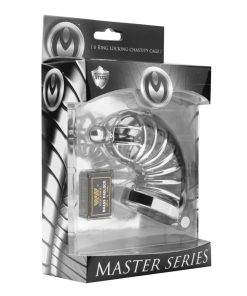 They will be compliant and under your control while wearing this devious chastity cage. Stainless steel and featuring a curved spine with enclosure rings and a removable cum-thru plug. Simply place him in the cage and fasten the base ring behind the testicles, then lock him up with the enclosed lock and key set. You decide when he is free...Set includes: 1 six ring cock cage, 1 base ring, 1 removable plug, 1 comfort hinge tube, 1 lock, 3 keys. The stainless steel material is non-porous, hygienic, easy to sterilize, temperature resistant, impact resistant, and offers long-term value.
