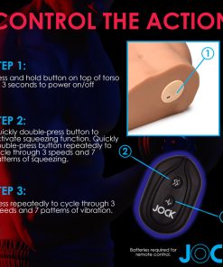 Note: Remote control distance up to 16 ft. Requires 2 AAA batteries, not included. Vibrating and squeezing masturbator is rechargeable with the USB cable provided.