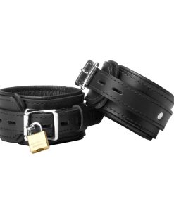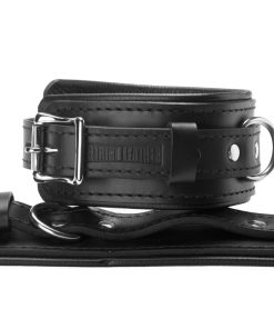 This top of the line bondage kit contains our best selling premium leather collar, with two wrist cuffs and two ankle cuffs. Each has a rolling buckle with a lockable clasp, double layered for security and durability. The D-rings on the front allow you to attach ropes, chains, or hooks for more accessory options. They can be attached to bed posts, bars, or each other. Now you can have all your bondage staples, all in one place and at a great price.