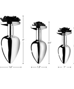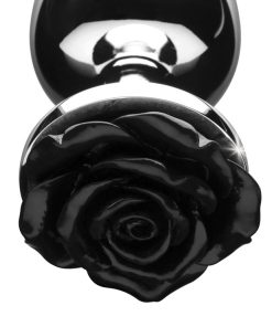 Beautify your booty with this darkly stunning rose! Featuring a smooth metal finish in lightweight aluminum, it features a beautiful deep black rose at the end which will flash as you bend over and tease your lover. The slim shaft will keep it from slipping out of place even during vigorous play. The nickel free aluminum alloy is nicely weighted and temperature sensitive for the perfect amount of sensation. When play is over, the non-porous material will clean easily without harboring any harmful bacteria. Make that booty bloom!