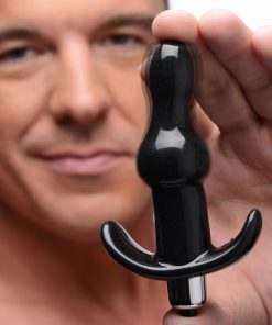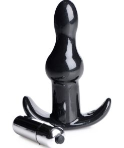 The rolling swells of this vibrating butt plug will tease and please everyone from an anal amateur to a booty boss! The small, smooth tip allows for a comfortable penetration before the bulb provides a subtle stretch, while the narrow base is shaped perfectly to fit between your cheeks. A one-speed bullet is included that can be inserted at the bottom of the plug. With the simple push of a button you can fill your hole with buzzing bliss. It is even waterproof to allow for wet, hot fun in the shower or jacuzzi! This firm, but flexible butt plug is phthalate-free and compatible with silicone and water-based lubricants. Clean with mild soap or a toy cleaner.