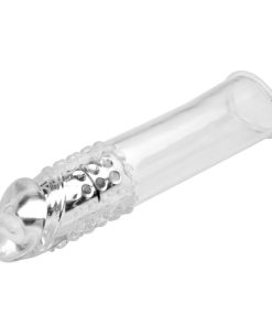 This semi-realistic sex sleeve combines vibration, texture, and girth for the ultimate in penis enhancement for more sexual satisfaction! For your pleasure, the sleeve is made of clear, ultra stretchy TPR, so it conforms to your rod. The textured exterior will give your partner added pleasure while the vibrating bullet provides intense stimulation to turn you into their very own vibrator! This clear sleeve is lightweight and travel ready, perfect for the man on the go!