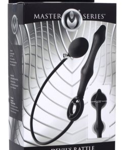 This inflatable silicone plug has it all! The Devils Rattle is an anal toy packed with unique features to satisfy your kinky wants and needs - featuring an inflatable plug, flexible cock and ball ring, and internal balls to rattle and drum against your anal internals with every movement. This silky anal delight is perfect for players looking for a versatile toy that checks all kinds of boxes!