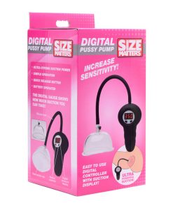 Increase size and sensitivity in your vulva with this digital pussy pump! The clear cylinder provides easy viewing as you watch your inner and outer labia get plumper and plumper as the number on the gauge gets higher and higher. The ultra-strong suction power is easy to control with the simple button controls. A quick release button allows you to rapidly free yourself from the intense pressure, leaving your swollen, sensitive vulva available for play. Alternatively, you can remove the hose and keep the cup suctioned on after you have achieved your desired results.