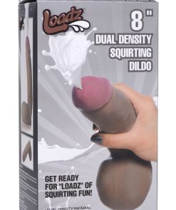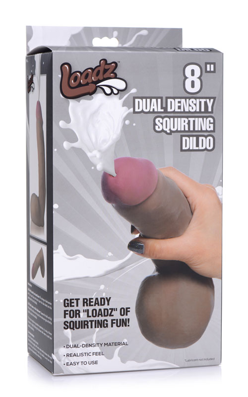 Enjoy a luscious dual density dildo and put on a show for your lover or your fans with this meaty, satisfying, squirting dong! Ejaculation lovers will enjoy the simple squeeze-and-squirt design - use on your lover and cover them with your liquid of choice. Perfect for use with a realistic cum lube, this Dual Density dildo is crafted for the cum hungry!