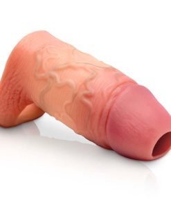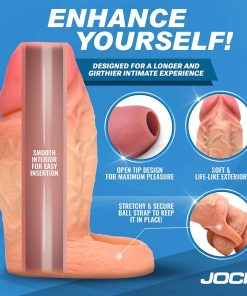 • Introducing the Penis Enhancer with Ball Strap! This extra-wide and short sleeve is designed to deliver an intense stretch to your partner's vulva or anus. Realistic veins and an anatomically accurate shape add authenticity, while the smooth interior guarantees a comfortable fit. The included ball strap keeps the enhancer securely in place, allowing you to focus on pleasure. The open-tip design grants your shaft more freedom and makes fluid release easy. Made from top-grade, body-safe silicone, it’s best used with water-based or oil-based lubricants for maximum enjoyment.