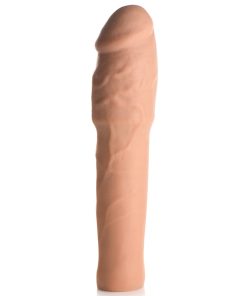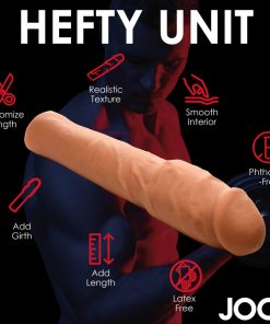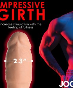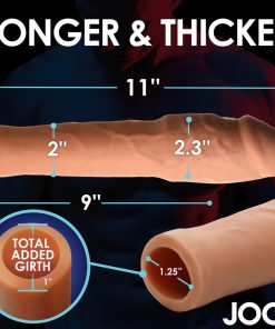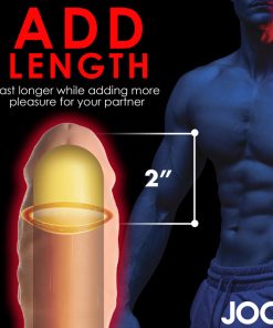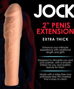 Satisfy your partner's craving for a larger rod with this extra thick 2 inch penis extension sleeve by JOCK! With a smooth interior you can easily slip your shaft inside the sleeve and still enjoy the warmth and squeeze from your partner once you penetrate them with your newly enlarged shaft! Gain an extra 2 inches in length and 1 inch in girth in an instant! The outside of the sheath is textured for a realistic feel and the extra thick tip will help to stimulate and massage their G-spot or P-spot. Wash with warm water and mild soap after each use.