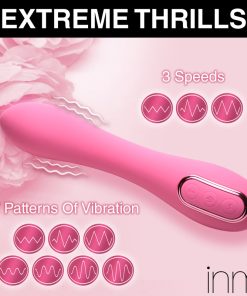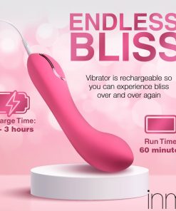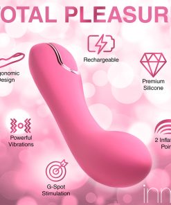 Experience targeted G-spot stimulation with a curved, inflatable vibrator! This toy already has a slight curve to the shaft which helps stimulate you where it counts. The added feature of two inflatable bulbs softly rubbing against your G-spot and adding sensual pleasure to each movement enhances the experience even more and gets you to that Big O even faster! Combine the added pressure from inflation with 3 speeds and 7 patterns of vibration that buzz you into a state of bliss! The silky smooth, phthalate-free, premium silicone is also perfect for deep massages that are body-safe and smooth. Use only water-based lubricants for best results! You can also take it in the shower or get it wet! It is rated IPX5 waterproof so it can handle low-pressure water jets, but do not submerge it underwater. Recharge after each use with the USB cable provided. To clean, wash with warm water and mild soap then spray with a toy cleaner and pat dry.