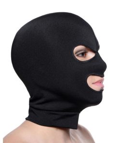 This devious disguise is designed to be comfortable and stretch completely over the head. This lightweight hood features an opening for both the eyes and both and will not hamper breathing or limit eyesight. The exposed mouth leaves open all kinds of naughty possibilities, perfect for some calculated roleplaying. Facade can also be used in combination with a blindfold, gag, or other exciting accessories. It is your domain....