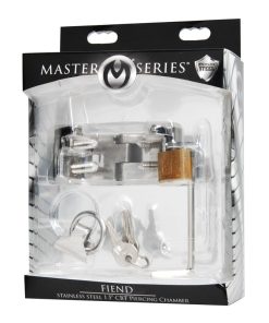 This sturdy, solid CBT device acts as a ball stretcher, scrotum torture device, and ball collar all in one! Snap this heavy metal band in place, and secure it with lock, which is built right into the cuff. There is absolutely no escape once it is locked into place. The larger size allows for ultimate restriction and security on bigger girths, or for more room if you find the smaller version too tight. Four pointed screws line the inside of this devious piece, which can be twisted to apply more pressure. The front features a steel O-ring, so you can lead your pet around with a leash, add ball weights, or lock him in place. Use alone or in conjunction with other toys, this unique CBT toy is as versatile as it is effective.
