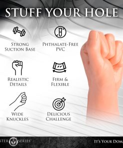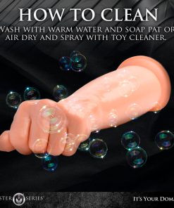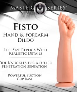 Take your best shot at going elbow deep on this extreme dildo! This smooth, lifelike fist and forearm allows you to master the next level of large insertions. Get all the length and girth your hole craves! You can fist yourself or get fisted by a partner with this clenched hand and the long arm that supports it. The realistic details will stretch you open and massage your hole. Perfect for vaginal or anal use, just lube up and get ready for intense penetrating pleasure. The flared base allows you to impale yourself entirely and ensures easy retrieval. The powerful suction cup can be mounted so that you can ride these knuckles... hands-free! Made of a phthalate-free material, it is body-safe and compatible with silicone and water-based lubricants. Clean with a mild soap or toy cleaner after use.