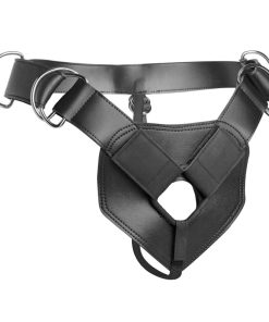Get ready for some penetrating pleasure with this fully adjustable and heavy duty strap on harness. This black harness features two waist straps that attach directly to the ring in the front, for a secure and firm hold. You can insert your favorite flared base dildo into the stretchy rubber ring. 3 rings are included for more size options. Just pick the ring you want, secure it with the easy to use Velcro closures, tighten the straps, and you are ready for some sexy fun! The waistband offers two adjustable straps, and is equipped with D-rings at the sides for maximum adjustability and a perfect fit!