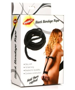 What can an innocent little rope do? Flesh and Spirit Bondage Rope can be pulled up around your waiting wrists...tied ever so tightly. Then slowly wrapped around your legs, interlaced securely behind each knee, turning your body into a work of art as you wait in a lust driven frenzy for the next move. Sixteen pleasurable feet of skillfully braided polypropylene black bondage rope to hold your lover captive.