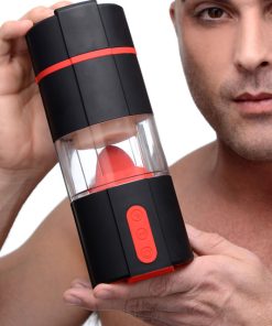 This vibrating masturbation stroker goes beyond fantasy, allowing you to penetrate a vagina and feel a tongue within! Treat your penis to 3 speeds and 4 functions of vibration from the vulva and flickering from the tongue. Just lube up and slip right in! You can even detach the tongue portion to use it separately on other parts of the body. The vulva is made of a soft material that feels ultra-realistic, with texture details within. The silicone tongue is firm but flexible. Experience vaginal and oral sex at the same time with this innovative male masturbator! Use with only water-based lubricants and clean with mild soap or toy cleaner to preserve the materials. A cap is included for easy storage.