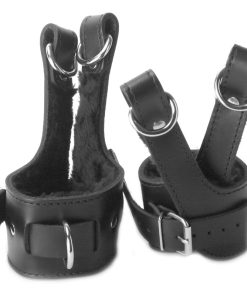 This all in one suspension kit features two comfortable, durable, and secure leather fur lined cuffs, with a heavy duty Shibari ring so you can string them up and leave them completely at your mercy. You can attach the cuffs to the ring with rope, carabiners, snap hooks, or however you wish. Hang the ring from the ceiling or a supportive frame, it is designed to take weight without bending or warping. This simple and exciting kit contains the essentials to get started with suspension play.