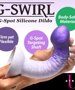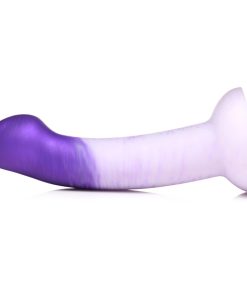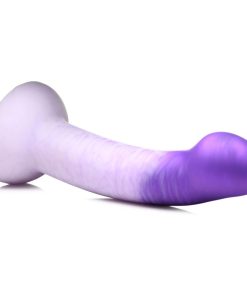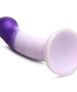 These sweet swirls of purple color dancing with the white are the perfect addition to your sexy toy box! The cosmic purple mixes with the milky white base giving this uniquely designed dildo a beautiful look that stands out! Made of premium, phthalate-free silicone, it is firm, flexible and body-safe to use! Enjoy the silky smooth shaft and the round, bulbed, G-spot targeting head. The wide, flanged base provides a perfect base to pair with strap-on compatible harnesses so you can enjoy it with a partner. Use the strong, suction cup base to ride solo for those times you want to fill yourself up and get the perfect angle! Use only water-based lubricants on the silicone dildo and wash with warm water and mild soap, then spray with a toy cleaner and wipe dry.