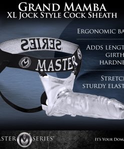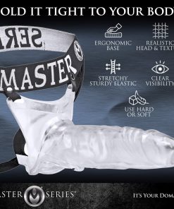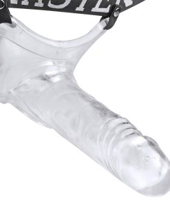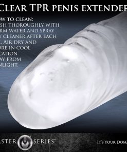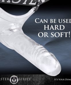 This clear penis extender adds length, girth, and hardness while allowing your rod to show through. The elastic waist and ergonomic base hold it tight to your body as the realistic head and textured shaft penetrates your partner. Can be used hard or soft, with a hole at the base that allows your balls to hang down. A single strap runs up the back, and the sturdy elastic stretches to fit most any size.