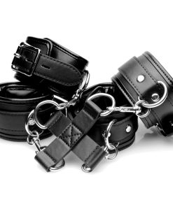 Assume the position! Put your pet into your ideal configuration of limbs with this hog-tie system! Four adjustable cuffs are lined with padding for the comfort of your submissive as you bind them up! Restrain them from the front or put them on their belly for a classic hog-tie. Locking buckles allow you to keep them confined and exposed for your pleasure! All of the cuffs are detachable and you can connect them to each other for a standard set of wrist or ankle cuffs! Make your fantasies come to life with comfort and convenience!