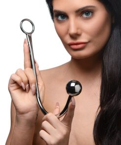 Combine the visual and sexual pleasure of bondage and anal play with this stainless steel anal hook from the Master Series. Hooked features a stainless steel end ball that is inserted into the anus and a open ring at the other end which can be hook up to ropes and other bondage equipment, ensuring a strong hold on its wearer. The ball provides stimulation, and allows you to pull the hook upwards without impaling your partner. For even more sensation, Hooked can be used with the Master Series Cannonball Intruders Orb. Just unscrew the original ball and attach the larger, heavier Cannonball for a whole new range of stimulation and exploration...