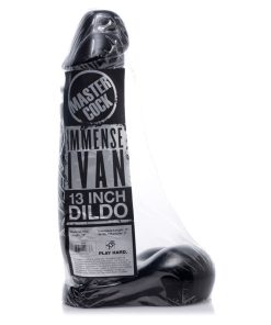 This thrilling black dildo is a full 12.5 inches of ass-stretching glory. The deep black PVC material is perfect for the stiffness needed when pounding such an intimidating specimen of cock. Work your way past the flared cock head, revel in every slick inch of shaft as it slides in, and bottom out at the round, enticing balls. A wide base and pleasing weight keep this immense monster steady as you take it over and over. PVC is the perfect blend of firmness and flexibility, making it ideal for larger toys or ass play.