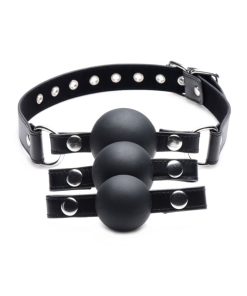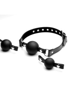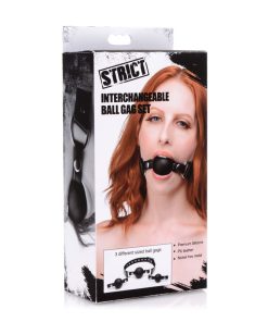 Enjoy more ways to play with a versatile gag set that includes 3 different sized balls. Find the perfect fit or force your playthings mouth open wider and wider, just for fun! Select the size you want and snap the gag into the strap. The ball gag system comes with one strap that adjusts to fit most sizes and buckles at the nape of the neck. Its soft interior feels luxurious and comfortable against supple cheeks. The 3 balls are made of odorless, tasteless silicone and are non-porous for an easy sanitization.