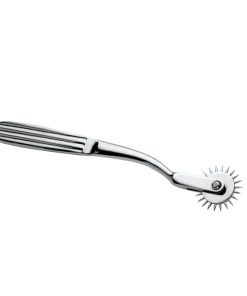 Test the limits of sensitivity play with this classic Wartenburg wheel. Run this premium spiked wheel across the skin and other highly treasured areas for an exciting prickle of pleasure. Made of nickel-free stainless steel and deviously designed with a row of evenly spaced sharp pins that turn smoothly as it rolls across the flesh, it is ideally designed for intense, exquisite pleasure. Take it to the next level with a little temperature play... the slick material can be warmed or cooled for an extra spike of sensation.