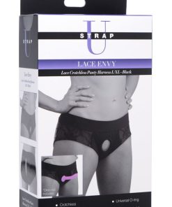 This lacey harness is crafted for functionality and comfort. The crotchless design keeps you ready for action when the mood to switch positions arises, allowing you and your lover to play with absolute freedom. The lingerie styling and universal O-ring let you get your strap-on in style and comfort!