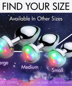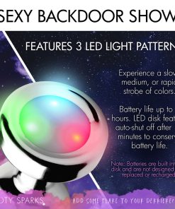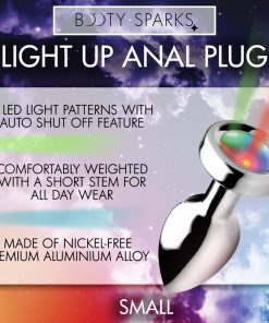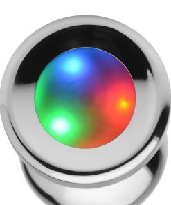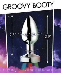 Shake your groove thing and light up the night! This groovy booty plug features 3 LED light patterns to experience a slow, medium, or rapid strobe of colors. The sleek, smooth metal forms a tapered tip that is easy to accommodate at all levels of experience. A narrow stem makes it perfect for long-term wear, whether you are going to a rave or wearing it out on a date - surprise your partner when the lights go out at home! Comfortably weighted, this plug is made of nickel-free aluminum alloy, which is non-porous for a thorough sanitization after use with mild soap or toy cleaner. This material is compatible with all types of lubricant.