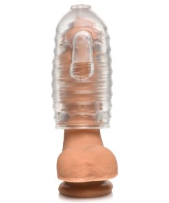 • Ribbed Inner Tunnel: The interior is ribbed, bumpy and tight for satisfying stimulation! As a bonus, there's a cum-thru tip at the end that makes clean up easy!