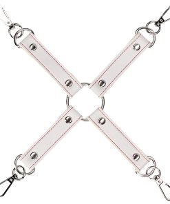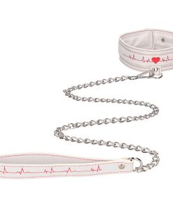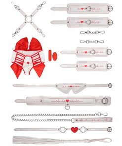 • Themed Bondage Kit: This nurse-themed bondage kit includes blindfold, wrist and ankle cuffs, hogtie straps, collar and leash, heart shaped ball-gag and flogger. All items are made from PU leather, silicone and metal.