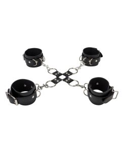 Looking for a hogtie cuff set that can do it all and is made to play hard? Look no further. The cuffs of Ouch! have quality leather straps with elegant stitching down the length of the straps. They are comfortable but incredibly secure. Use this hogtie to bind your partner from behind or in front of them to give you easy access! The straps have 6 holes to adjust the length, with metal fastenings and D-ring connectors to connect them. Use this toy on its own, or in combination with other bondage and BDSM products!