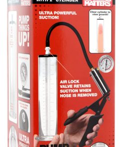 Pump things up! This Penis Pump Kit features a transparent 9 inch cylinder with measurement markings so you can track your progress with each pump. The wide lip base ensures a tight seal, while the flexible hose and quick release valve makes it easy to maneuver and release the pump when you're ready to play.