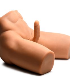 Play harder, longer and experience more intense pleasure with this poseable torso! Enjoy his rock hard abs, his firm thighs and his round, full booty! You can pose him in countless positions due to his stainless steel armature, opening up a world of new pleasure and fantasy! At the front of his body is a thrusting, vibrating dildo that warms itself up. He gives as good as he receives with both a dildo and an anal canal that is textured for your pleasure! Use the battery-operated remote control to control the 7 thrusting modes, 10 vibrating modes and the warming mode on the silicone dildo. Penetrate his backdoor and enjoy grippy, textured nubs that grab, massage and stimulate your shaft with each stroke. Indulge in luxury and pleasure by using the battery-operated vibrating bullet and warming wand to enhance the rear-end experience! The body is made out of quality BioSkin TPE so it is super soft, firm and realistic both in look and feel! The dildo attached can also be removed for easy cleaning and is poseable so you can angle it in any way that will hit your sweet spots! Use the cleaning kit to wash his anal canal afterwards and recharge the dildo with the USB cable provided. Use only with water-based lubricants for best results. After play, wash dildo shaft with warm water and toy cleaner. Avoid splashing water on the base of the dildo near the charging port and metal attachment. Pat dry and store in a cool, dry location, away from direct sunlight and separated from other toys.