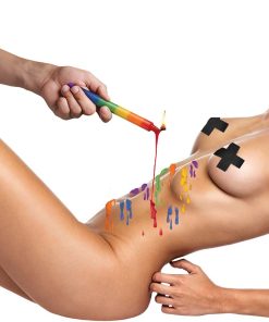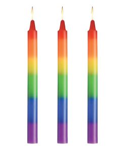 Transform your steamy scenes together and queer them up with our Pride Rainbow Drip Candles! Each of the three candles are layered with vibrant colors that display the full spectrum of the rainbow. These unscented wax play candles are perfect for adding a touch of visual excitement and temperature play to your intimate scene. As you drip the smooth, hot wax on your skin or your partner's, you'll experience the stunning transition of colors along with the pleasing sensation of hot wax! Perfect for parties or photoshoots, these candles not only provide a kinky sensation but also create stunning body-art to share and admire. Ideal for those sensitive to perfumes, our unscented candles offer an exquisite experience without overwhelming your senses.