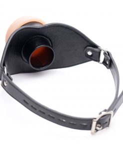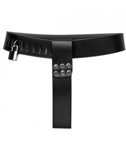 Measurements: Chastity belt fits waists between 25 and 35 inches in circumference. Bottom strap adjustable from 11 to 21 inches in length. Interior gag diameter is 1.75 inches, 1 inch insertable. Straps adjust up to 26.5 inches in circumference.