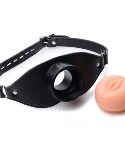 This open-mouth gag will turn your partners face into a vulva that you can thrust your shaft into! Tighten the straps around their head and secure them with the locking buckle. Push past the soft, realistic vaginal opening into your slaves eager-to-please mouth! The hard interior ring of the gag will keep their lips and teeth pried open. Enjoy humiliating your partner while they service you with this unique gag!