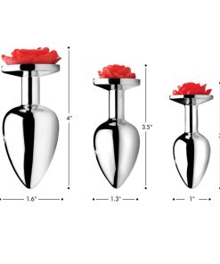 Beautify your booty with this shining red rose! Featuring a smooth metal finish in lightweight aluminum, it features a lovely rose flower at the end which will flash as you bend over and tease your lover. The slim shaft will keep it from slipping out of place even during vigorous play. The nickel free aluminum alloy is nicely weighted and temperature sensitive for the perfect amount of sensation. When play is over, the non-porous material will clean easily without harboring any harmful bacteria. Make that booty bloom like a rose!