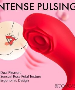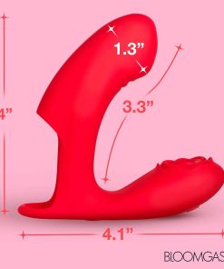 You've given your partner a new way to play with you! When the shaft is inside, the rose presses against your clit and begins to buzz and pulse! You feel the pressure match the motions of the fingers. The smooth, flexible shaft is perfectly placed on your G-spot, and their thumb presses against the flower to make you moan! The combination of both heightens your senses. You begin to feel the rush of heat washing over you as the large, round head works its magic at the same time. You can't get enough of this toy, but before you know it you're arching your back and exploding in pleasure!
