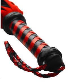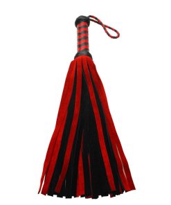 The many tails of this suede flogger will flash red and black as they impact the skin of your sub. Each strand is supple and soft, but will land with a sting when used properly. The handle is leather wrapped in an elegant black and red herringbone pattern, and features a matching leather wrist loop.