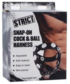 Increase sensation with an attractive cock and ball harness! This snap-on male pleasure device will look and feel sexy when you wear it! Highly adjustable, the straps snap into place to your size and comfort level. As blood is restricted, your cock and balls will be bulging with sensitivity. Your erection will be harder, stronger, and veinier than ever and you will not cum sooner than you want to! To release, simply unsnap the harness and enjoy your orgasm!
