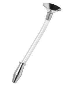 This hollow steel anal plug comes with a clear, semi flexible piece of tubing, attached to a metal funnel. This gives you direct access to their innermost areas. Just pour the liquid of your choice into the end of the funnel, and watch as it fills them to the brim. The hose detaches easily from the plug, so you can let the liquid rush out again, or remove the plug entirely and command them to hold it inside. The heavy stainless steel is bright and flawless, and will heat up or cool down depending on the liquid you choose. It is rust resistant and non-porous, perfect for anal adventures.